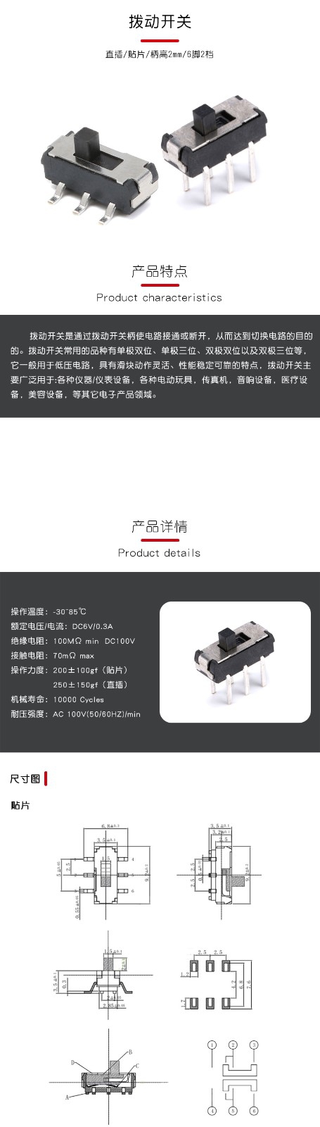 拨动开关 MSS-22D18(2P2T)G2(10只/件)